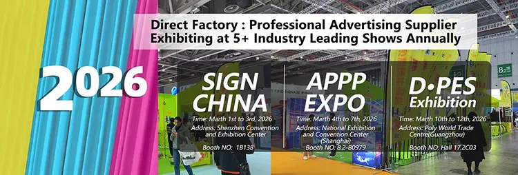 Sign China là triển lãm ngành bảng hiệu lớn nhất, kéo dài nhất ở châu Á - thu hút hơn 1.200 nhà triển lãm và 80.000 khách tham quan chuyên nghiệp hàng năm. Nó bao gồm toàn bộ chuỗi sản xuất bảng hiệu, từ nguyên liệu thô như acrylic và nhựa vinyl cho đến màn hình LED thành phẩm và thiết bị in kỹ thuật số. Hầu hết mọi người ở đây đều là người làm bảng hiệu, chủ cửa hàng in và đại lý quảng cáo đang tìm cách đẩy mạnh hoạt động sản xuất của họ. Đối với sự kiện này, Earth Display sẽ làm nổi bật các màn hình bật lên bằng vải căng và hệ thống khung nhôm – hoàn hảo cho các doanh nghiệp bảng hiệu vừa và nhỏ muốn có thiết bị đáng tin cậy mà không tốn nhiều tiền.